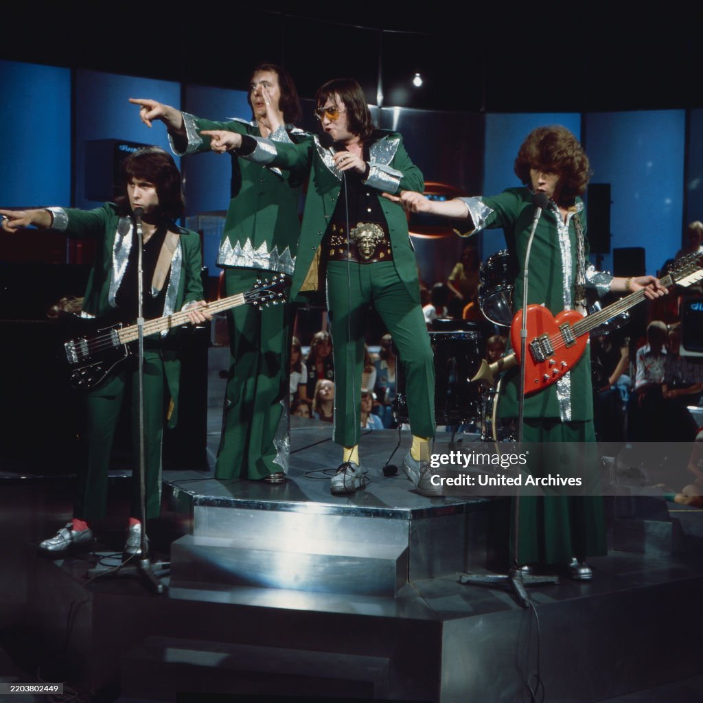 Britische Glam Rock Band Mud bei ihrem Auftritt in der ZDF Musiksendung “Disco” vom 2. August 1975 mit ihrem Song “Oh Boy”. (Photo by kpa /United Archives via Getty Images)